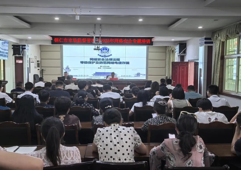 为进一步拧紧“思想安全阀”、锻造“防护硬本领”,以专业赋能筑牢市场监管领域网络安全的坚实防线年国家网络安全宣传周进机关活动,邀请市公安局网络安全领域专家陈斌,组织开展了2025年网络安全专题培训。培训从网络安全领域核心法律法规解读、当前复杂多变的网络安全态势、铜仁市电信诈骗典型案例、涉密人员及公文的精细化管理等方面作了深入的讲解,培训活动的开展,切实提升了全局干部职工识别网络风险、抵御网络攻击、防范电信诈骗的综合能力。